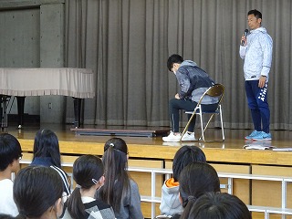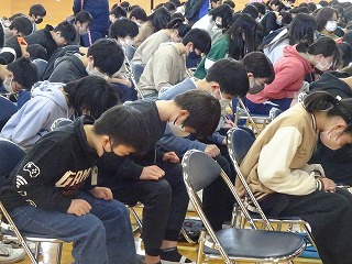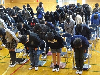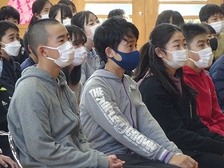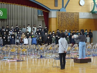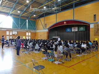 学年主任から、卒業式の意味や練習の心構えなどについて話がありました。