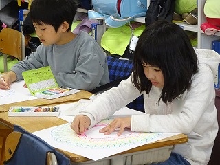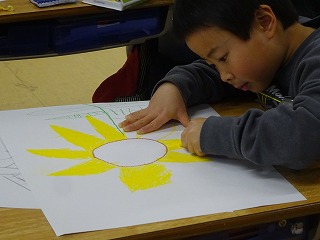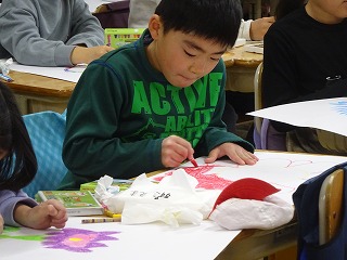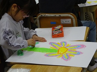 学習問題は、「つぎの1年生のために、いろあざやかな花のえをかこう。」です。