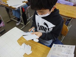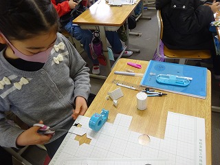 今日の課題は、「工作用紙で、円柱を作ろう。」です。