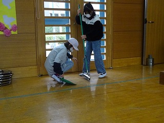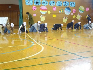 来週行われる卒業式のために、5年生が体育館をきれいにしてくれました。