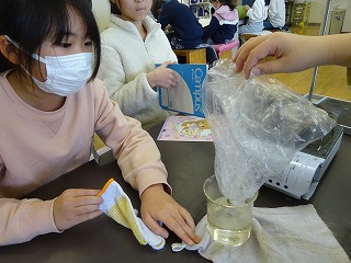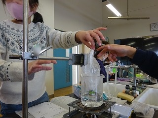 水を熱し続けたら,ビニール袋の様子に変化がありました。