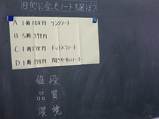 今日のめあては,「目的に合ったノートを選ぼう」です。