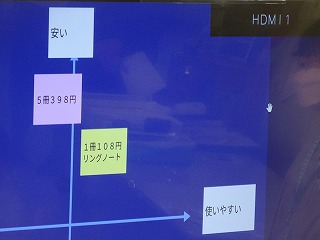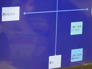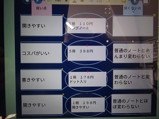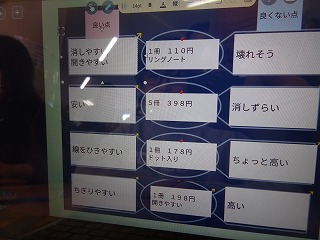 4種類の商品(ノート)を手に取り,開いてみたり,文字を書いたりしました。