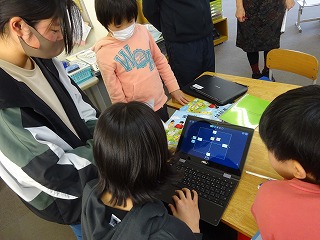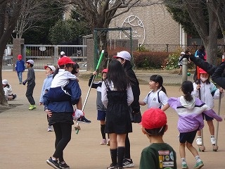 先輩たちの熱心な教えで,真剣に練習に取り組んでいる4年生です。