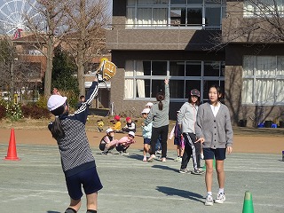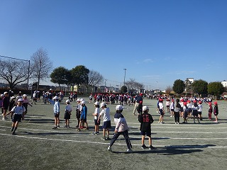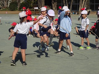赤組と白組に分かれて,3分間で何回跳べたかを競い合いました。