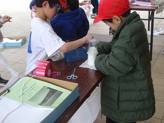 様々な道具を使い,風を利用して遊ぶ方法を考えています。