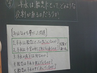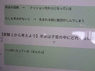 実験を通して羊水の役割を考え,友だちと話し合うことで理解を深めることができました。
