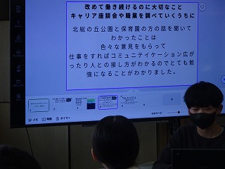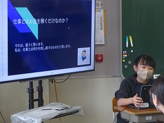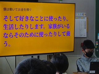 「自分の未来について考えよう。」というテーマで,将来めざす自分の職業について調べたことを発表しました。
