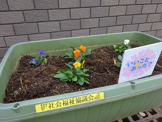 社会福祉協議会の方が,プランターの花を植え替えてくださいました。
