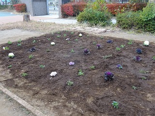 理科委員会が,ビオラと葉牡丹の苗を植えてくれました。