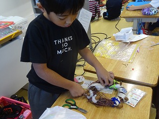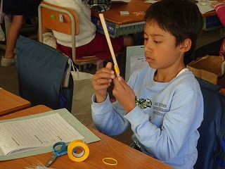 パワーアップするためにどのような工夫ができるか話し合った後,自分で作り直したり,試したりしながらおもちゃを完成させます。