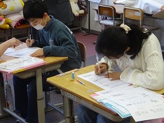 一人一人気持ちを落ち着かせ,ほどよい緊張感を保ちながら,大変意欲的に書き初め練習に取り組みました。