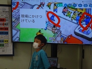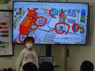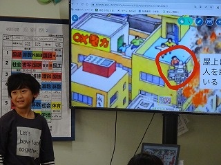 「火事が起こったとき働いている人は何をしているか。」をグループで話し合った後,発表しました。