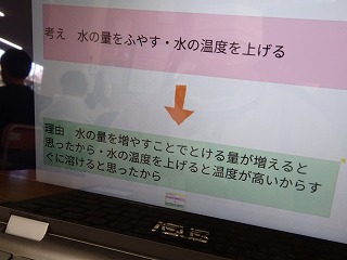 そして,学級全体で考えを共有した後,実験計画を話し合いました。