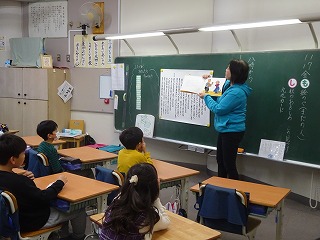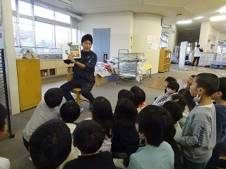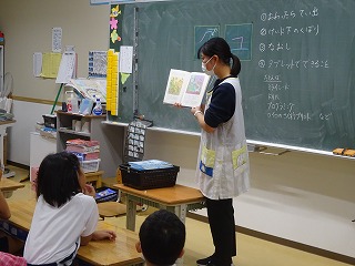 本日8時から15分間,先生たちによる読み聞かせを行いました。