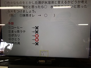 今日の課題は,「水よう液かどうか,いろいろなものをとかした液で判別しよう。」です。