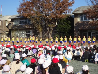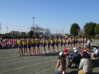全校児童代表として4年生が先頭に立ち,選手に熱いエールをおくりました。