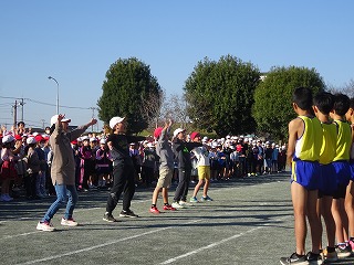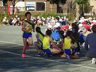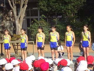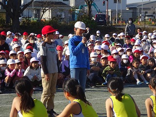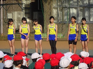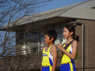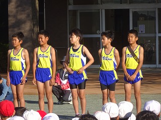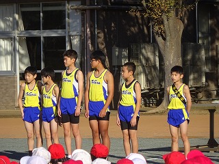 さて,原小学校代表となった選手の皆さん,いよいよ大会まであと5日となりました。駅伝は,自分だけのレースではありません。この襷には,ともに苦しい練習に取り組んできた仲間の思いが込められています。一人で走るのではありません。仲間と一緒に走るのです。ですから,大会では,自分のために,友だちのために,思い切り走り抜いてください。」