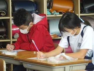 子どもたち全員,真剣に聞いてメモを取っていました。