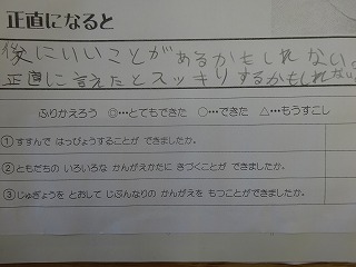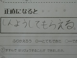 今日のテーマは,「正直になると,何がよいのだろう。」です。