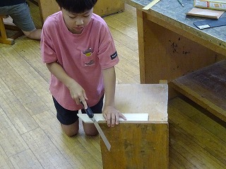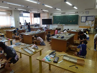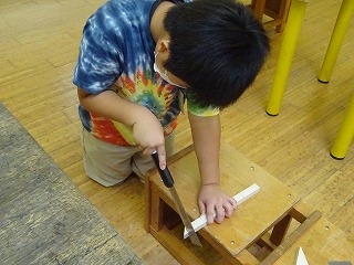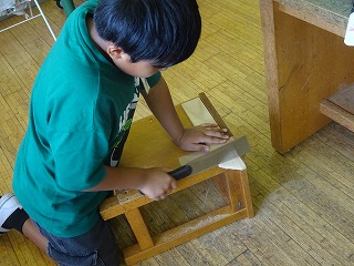 のこぎりを使っての学習は,小学校で初めてです。