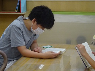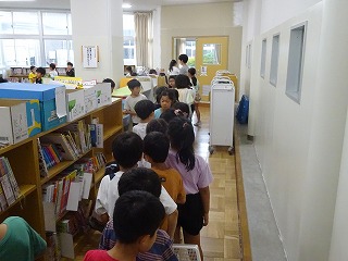 本を返却するために並んでいます。