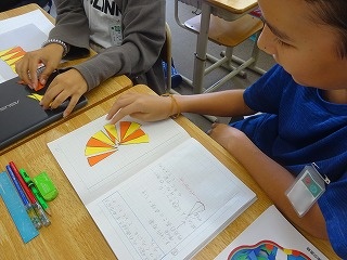 円を16等分にした扇形を操作しながら考えました。
