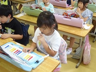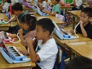 けんばんハーモニカを使って学習しました。