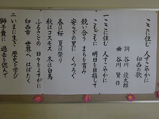 次に,今月の歌「ここに住む 人すこやかに」(印西の歌)を歌いあげました。