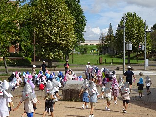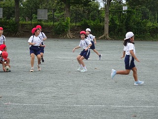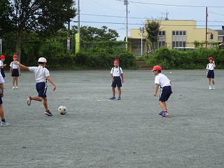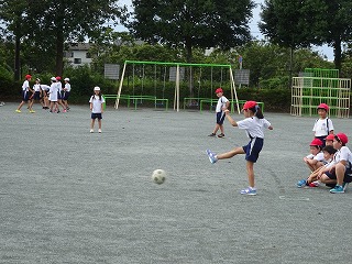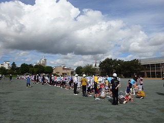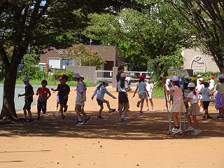 今日は何とか天気ももって,校庭でも活動できました。