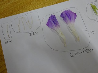 あさがおの花のつくりを調べています。