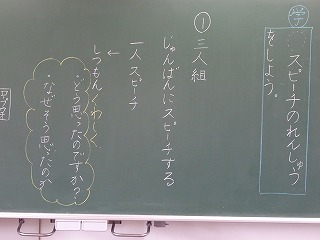 グループになってスピーチの練習をしています。