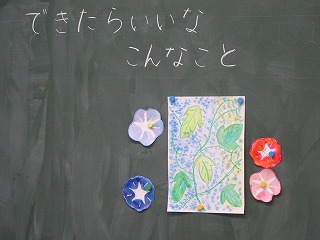 自分たちで育てたアサガオを描いています。