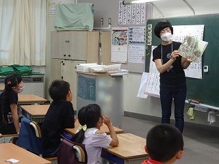 今朝は1~3年生対象に,おはなしダンボさんによる読み聞かせがありました。
