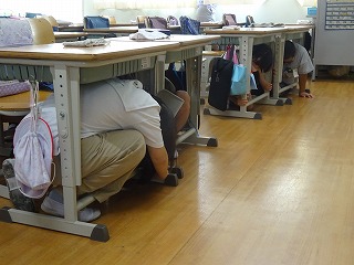 1次避難は,机の下です。