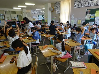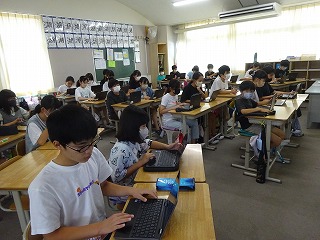 今日も熱中症警戒アラートが発表され暑さ指数も「危険レベル」でしたが,冷房により比較的教室は涼しく,子どもたちは学習に集中していました。