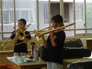 朝と放課後,こつこつと練習に取り組んでいる音楽部。