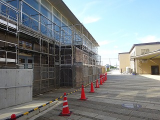 夏季休業中に体育館の壁面や照明の工事を行います。