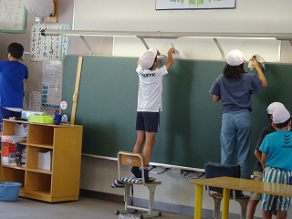 2023年7月19日 14時09分昨日に続いて今日も猛暑でしたが,原っ子たちは一生懸命掃除をしました。