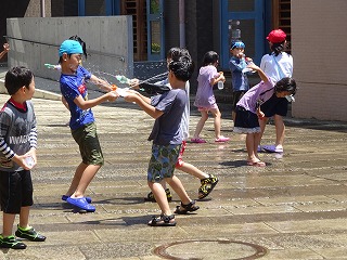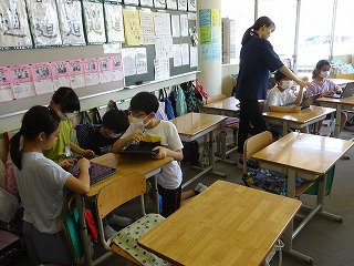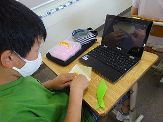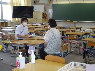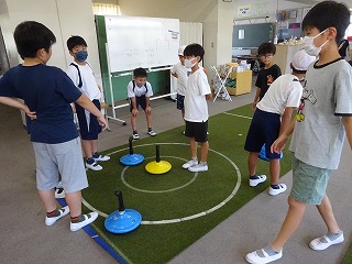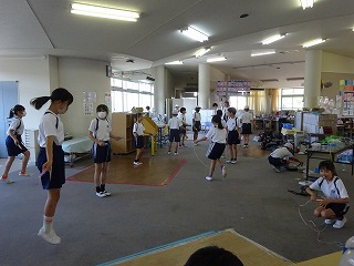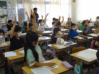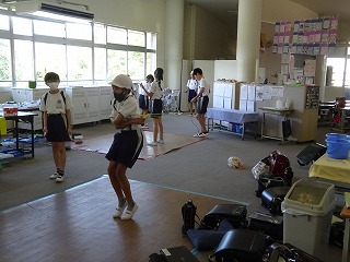 熱中症暑さ指数が「危険レベル」であったため,校庭や体育館での活動は行わず,涼しい室内で実施しました。
