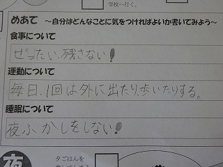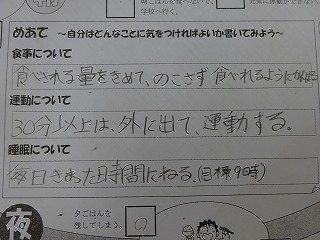 これからも,食事・睡眠・運動のバランスのとれた生活を心がけて,健康であり続けてほしいと思います。