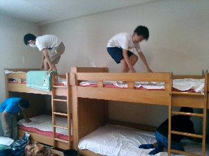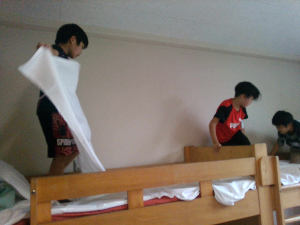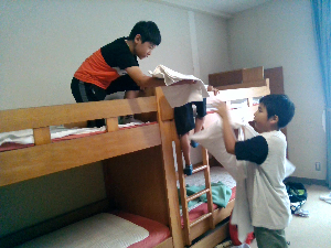 友だちと協力したり、一人で頑張ったりして、なんとか寝られる準備ができました。