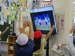 雨が降っていたので,室内でラジオ体操の練習をしました。