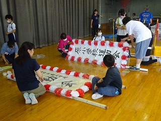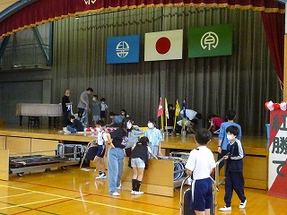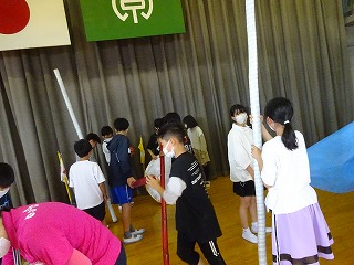 明日の運動会は雨天の予報が出ているため,4日(日)に実施予定となりましたが,6年生児童は本番に備えて,一生懸命準備をしました。