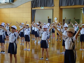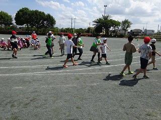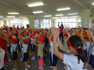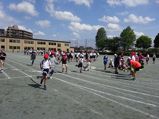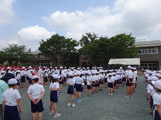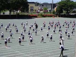 一週間の始まりの月曜日。気温も高く蒸し暑い一日でしたが,来週の運動会に向けて元気よく練習に取り組む原っ子たちです。