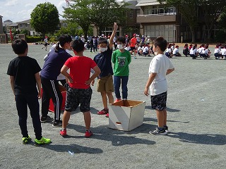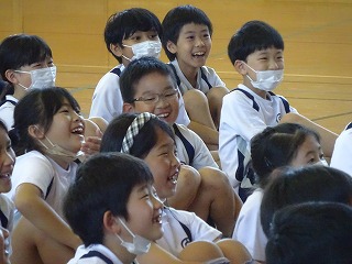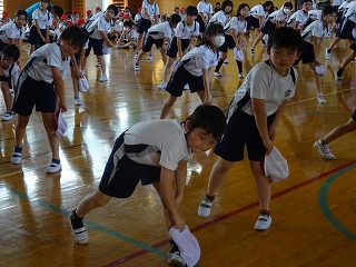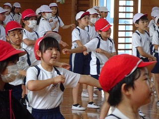 すでに指導者の動きを見ないで,曲に合わせて上手に表現運動ができます。
