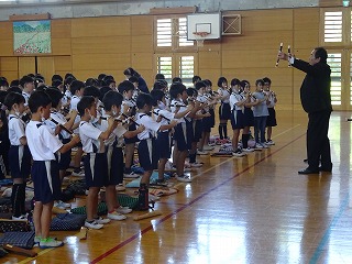毎日運動会の練習があって疲れもたまっているとは思いますが,子どもたちは朝から元気いっぱい応援練習をしました。
