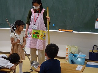 この大きなおたまには,何人分の味噌汁が入るでしょうか?