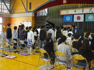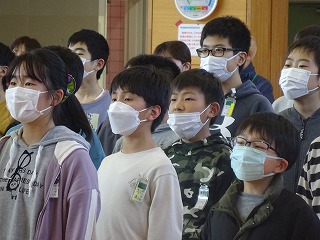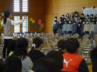 今週末に行われる卒業式に向けて,5年生が歌の練習に励んでいます。