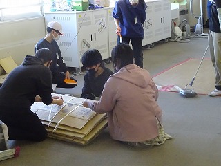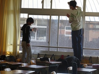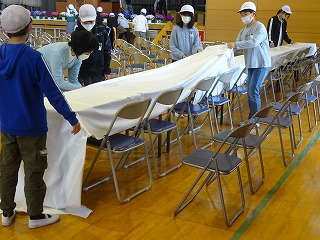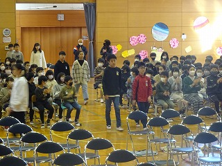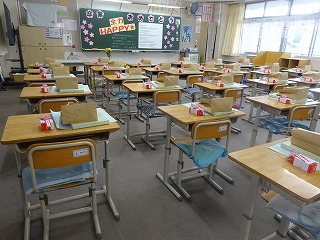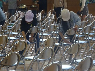 1~4年生と6年生が下校した後,5年生が明日の卒業式準備をしてくれました。
